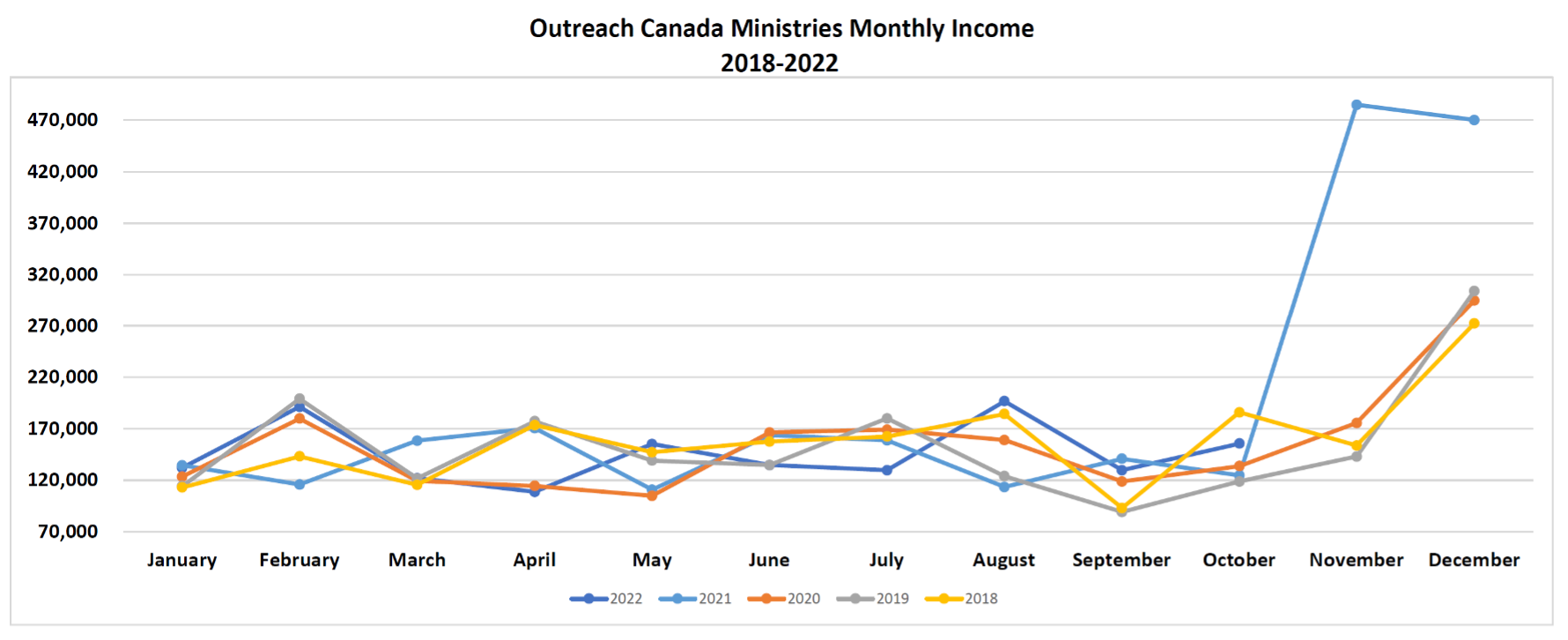 We are nearing the end of the year. Did you know that Outreach Canada receives about 17% of our donations in December? We receive twice as much in December as in any other month of the year!