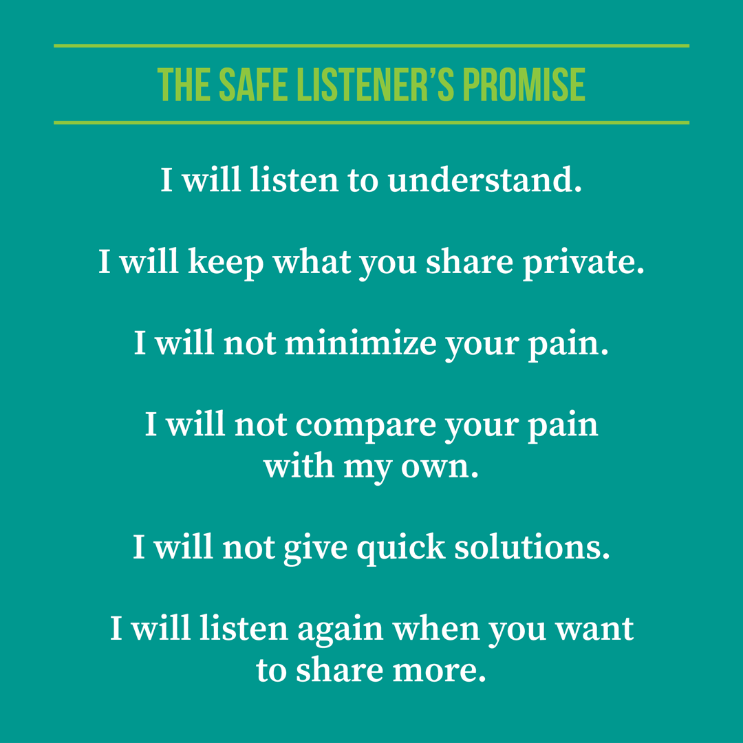 - Respond with appropriate resources to help heart wounds, and comfortable, safe spaces to talk.